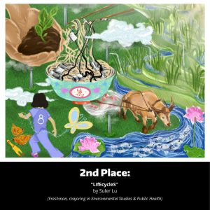Casey Olmstead’s “Social Ecosystems,” which won first place, illustrates the resilience and activism of marginalized communities against environmental degradation. Suler Lu’s “LIfE cycleS,” awarded second place, critiques the global waste trade’s impact on non-western countries. Lizzie Hackett’s third-place piece, “Cyclical,” emphasizes the consequences of human actions on the environment and other species. The winning artworks will be displayed at EarthLab offices and select events, with Olmstead’s piece featured in an upcoming data visualization project. This contest has not only showcased student talent but also underscored the powerful role of art in communicating environmental justice.