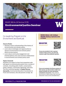 Welcome back to campus, Huskies! We’re excited to share a couple of seminar courses that connect to environmental justice and training the next generation of environmental leaders.