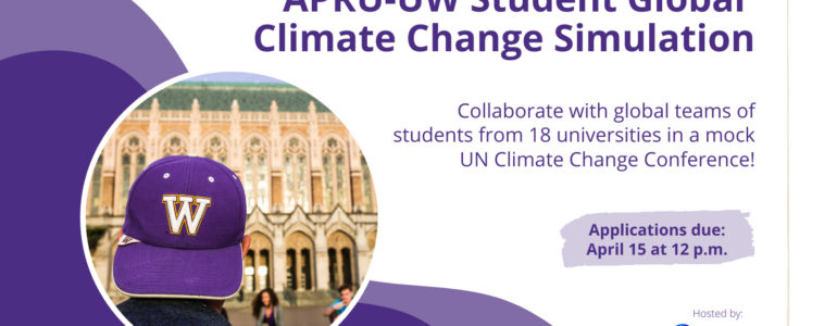 EarthLab and the Center for Health and the Global Environment (CHanGE) are pleased to offer 10 University of Washington students the opportunity to collaborate with a global team of students from 18 Association for Pacific Rim Universities (APRU) in a mock UN Climate Change Conference. A total of 180 students will participate from 18 universities in 13 economies.